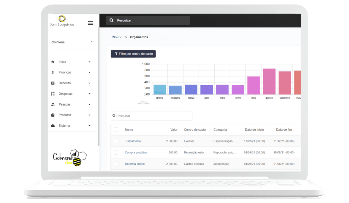 - Controle de orçamentos por CC;